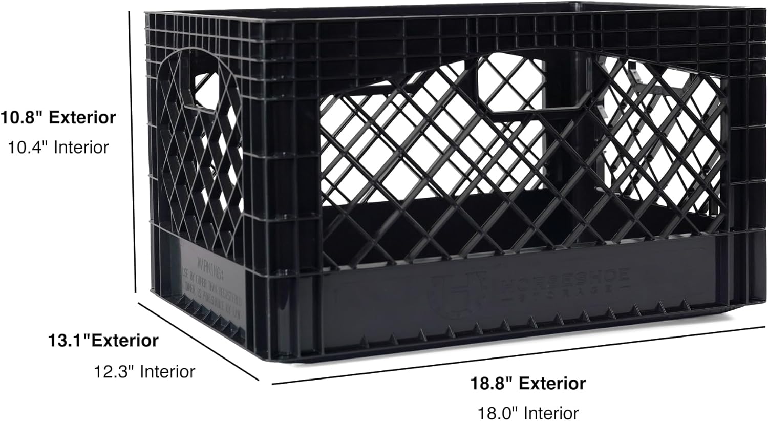 The HORSESHOE STORAGE 24Qt crate is a larger-than-standard, heavy-duty crate built for serious storage, offering more capacity than typical milk crates - but at the cost of portability and space efficiency.